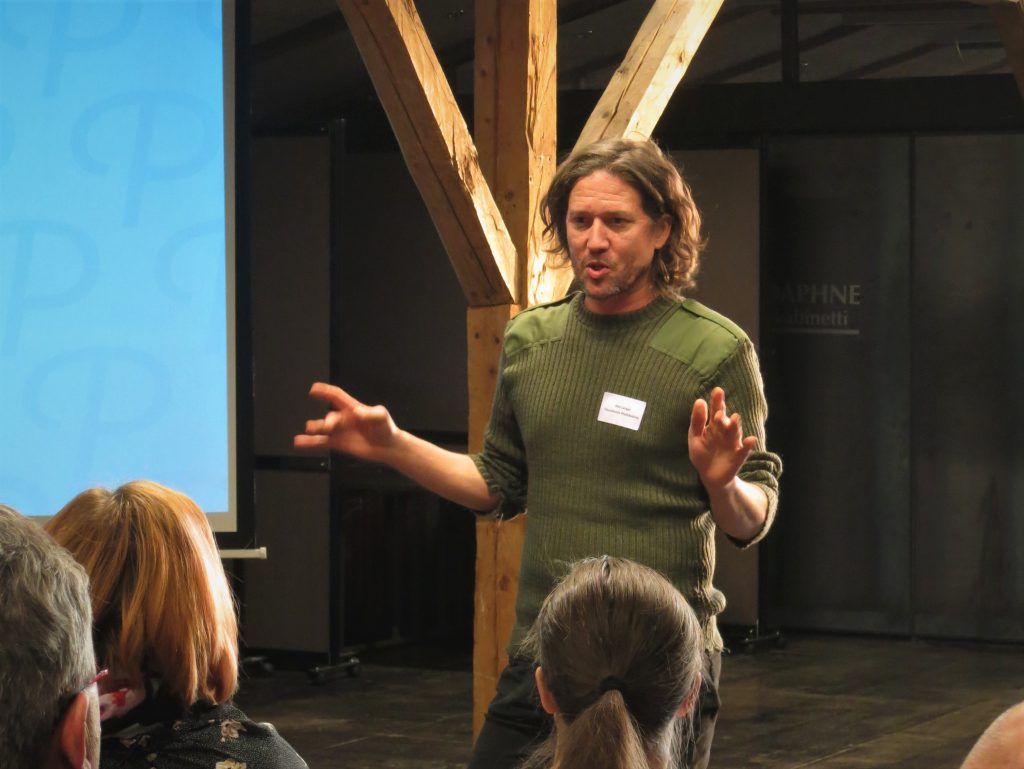 Kirsin jälkeen Polkan hankintakumppanina seitan-tuotteen kehittänyt Kim Langer osuuskunta Myötävoimasta kertoi tarinan tuotteen takana ja tuottajan kokemuksia hankintaprosessista. Osk Myötävoima on Kimin mukaan harrastelijaryhmä, jonka jäsenet tekevät päätyönänsä muuta kuin ruokaa ja jolla on hyvin monialaista toimintaa, yhtenä osana erilaisten tilaisuuksien vegaaninen catering.